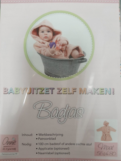 Naaipatroon badjas, inclusief duidelijke werkbeschrijving.Leuk patroon voor een badjasje voor de allerkleinsten. Voor de maten 56 t/m 80, 86/104 en 110/128.