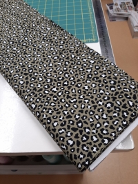 Katoen met panterprint olijf groen €4,00 per 0,50 meter