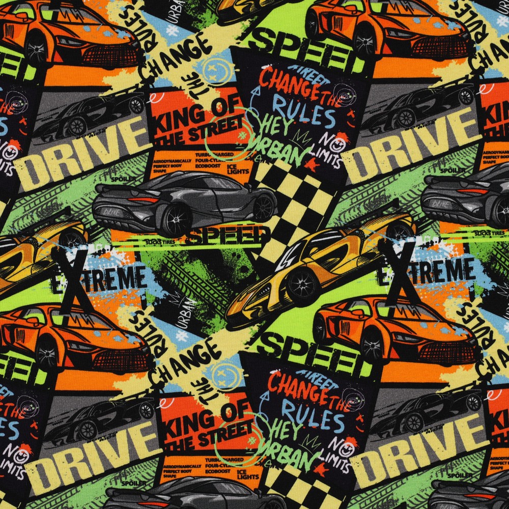 Katoenen tricot cars digitaal