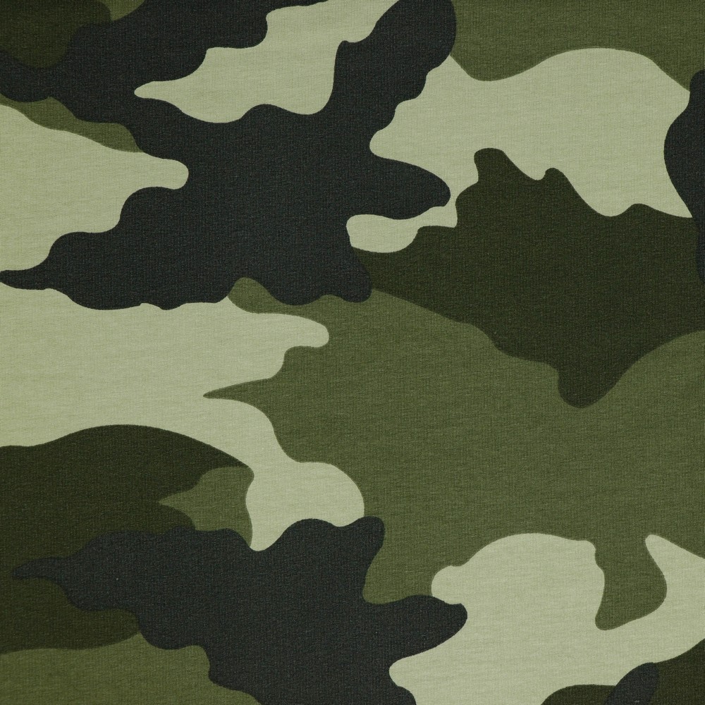 Katoenen tricot french terry camouflage groen