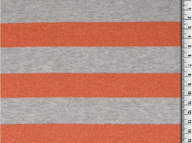Katoenen tricot met metallic oranje streep €5,00 per 50cm
