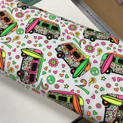 Katoenen tricot met neon busjes €6,50 per 50cm