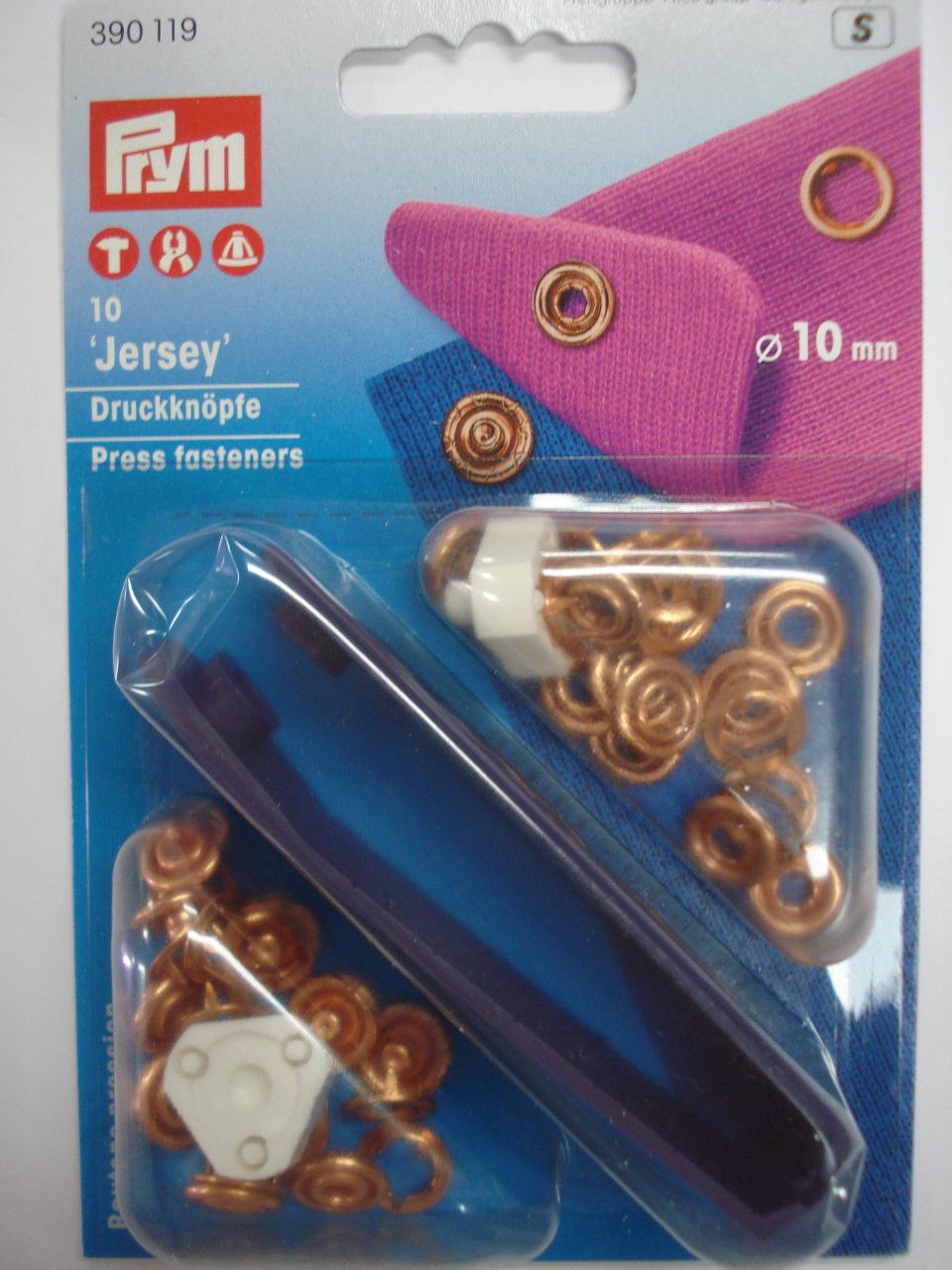 10 stuks per pakje. In te zetten met de prym vario tang of met de hulpstukken in de verpakking.