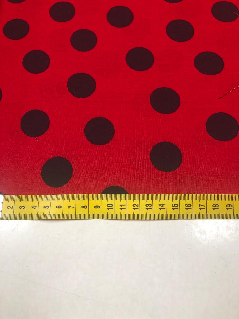 Katoen rood met zwarte polka dot