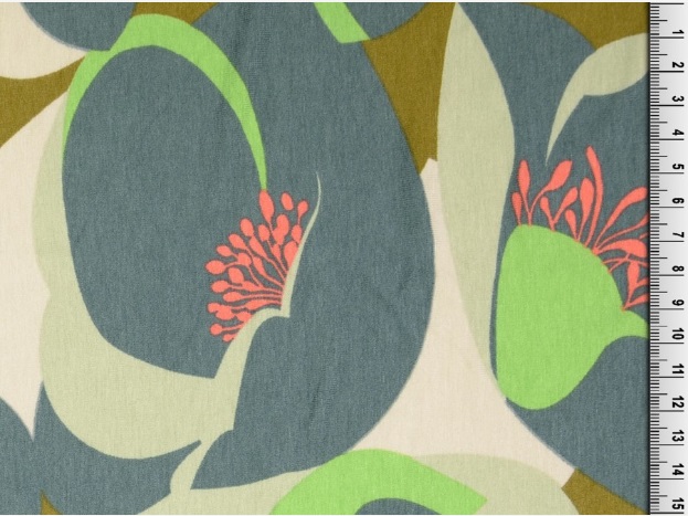 Viscose tricot met bloemprint groen €5,00 per 50cm